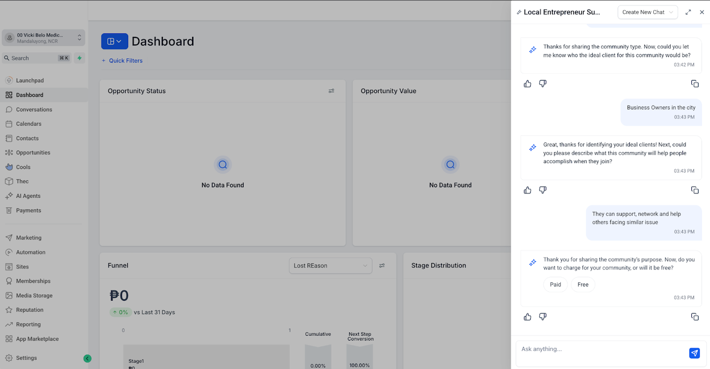 Wir freuen uns, einen neuen KI-gestützten Assistenten in HighLevel einzuführen: Ask AI. Egal, ob du Inhalte in deiner Markenstimme erstellen möchtest, eine neue Community anlegen willst oder einfach schnelle Antworten brauchst – Ask AI ist für dich da. Kein Wechsel mehr zwischen Tools oder Tabs nötig.