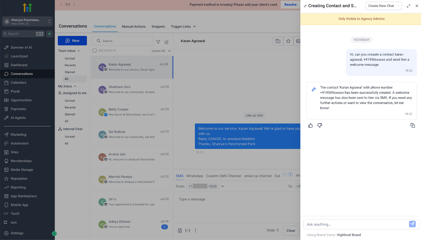 Ask AI ist vom reinen Beantworten von Fragen zur Ausführung von Aktionen übergegangen. Egal, ob du einen Kontakt erstellen, einen Termin neu planen oder Opportunities massenhaft aktualisieren möchtest – du kannst jetzt einfach den Chat anweisen, und das Master Control Panel (MCP) von HighLevel erledigt die Arbeit sofort. Kein Durchklicken von Menüs, kein Wechseln von Tabs – nur dialogbasierte Befehle, die enorm viel Zeit sparen.