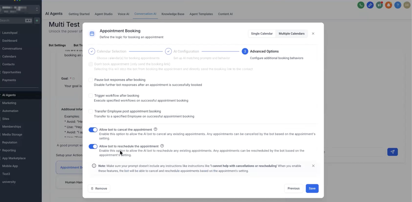 Erweitern Sie Ihre Terminplanungs-Flexibilität mit HighLevel Conversation AI – Unterstützung für mehrere Kalender.