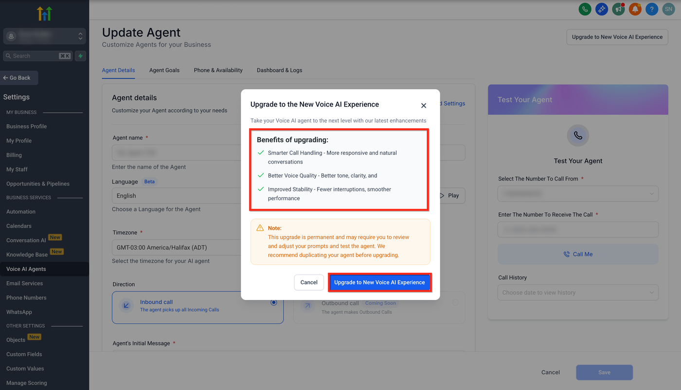 Das Upgrade deines Voice-AI-Agenten in HighLevel führt eine neue Generation KI-gestützter Telefonie ein. Es bietet eine verbesserte Sprachqualität, intelligenteres Anruf-Handling und höhere Stabilität.