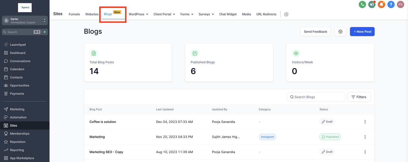 Klicke auf Create new blog post und füge deine SEO-Details hinzu