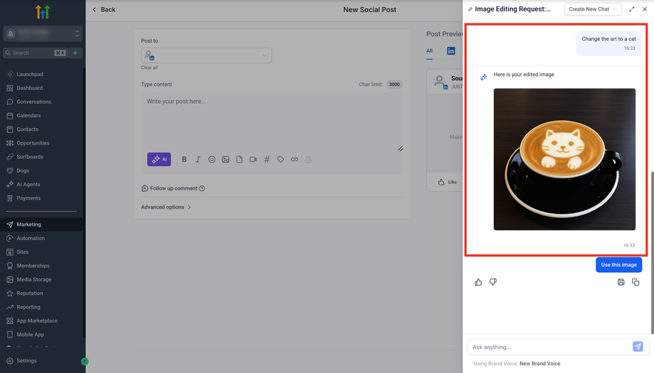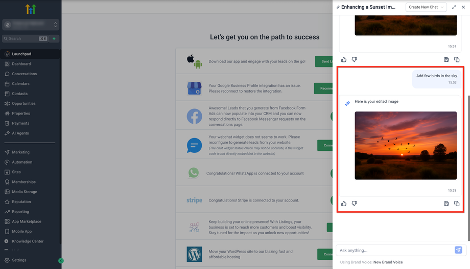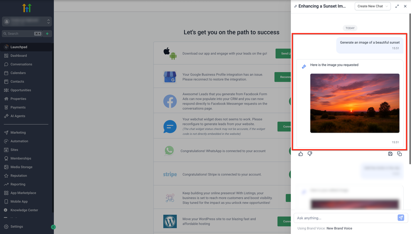 Dieser Artikel zeigt dir, wie du mit Ask AI direkt in HighLevel Bilder generieren und bearbeiten kannst. Egal, ob du Social-Media-Posts erstellst, E-Mail-Designs gestaltest oder an einer Website arbeitest – du kannst jetzt ganz einfach Bilder mit natürlichen, dialogbasierten Prompts generieren und bearbeiten.