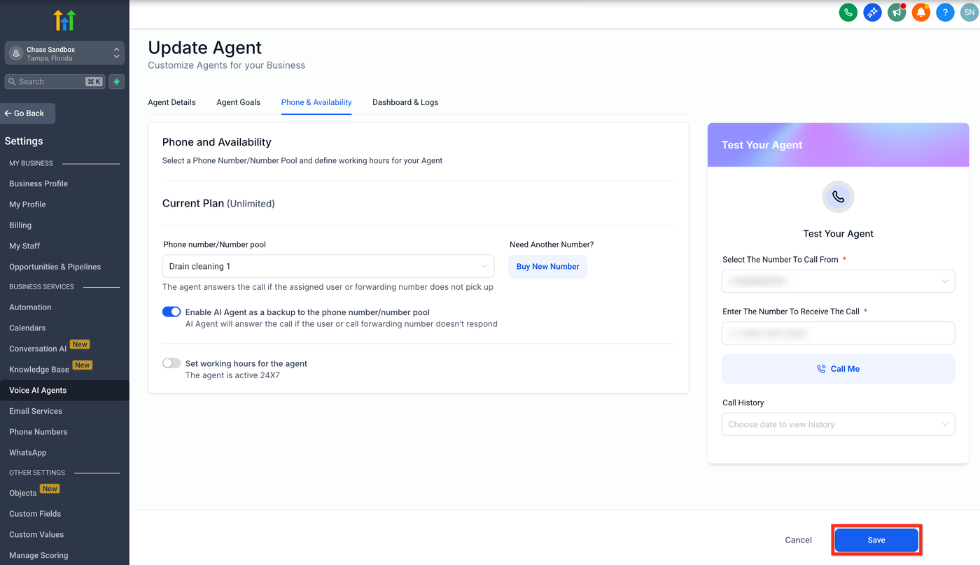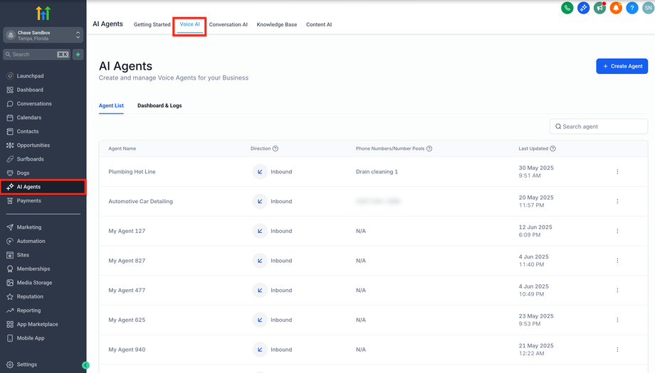 Schritt 1: Auf die Voice-AI-Agenten-Einstellungen zugreifen