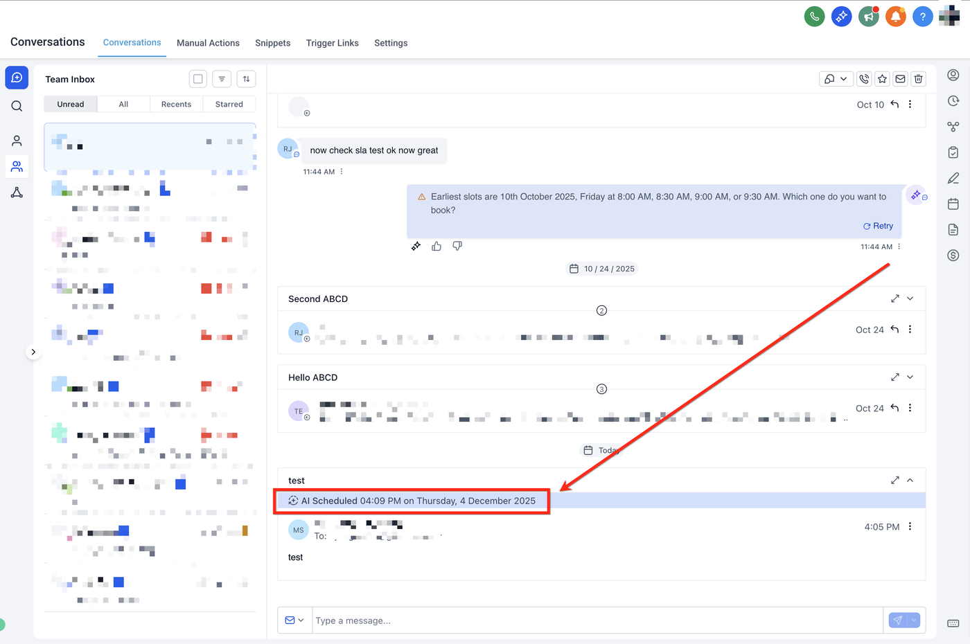 AI Schedule steht neben den bestehenden Versandoptionen in Conversations zur Verfügung, sodass du einfach zwischen Send Now, Send Later und AI-optimierter Zustellung wechseln kannst.