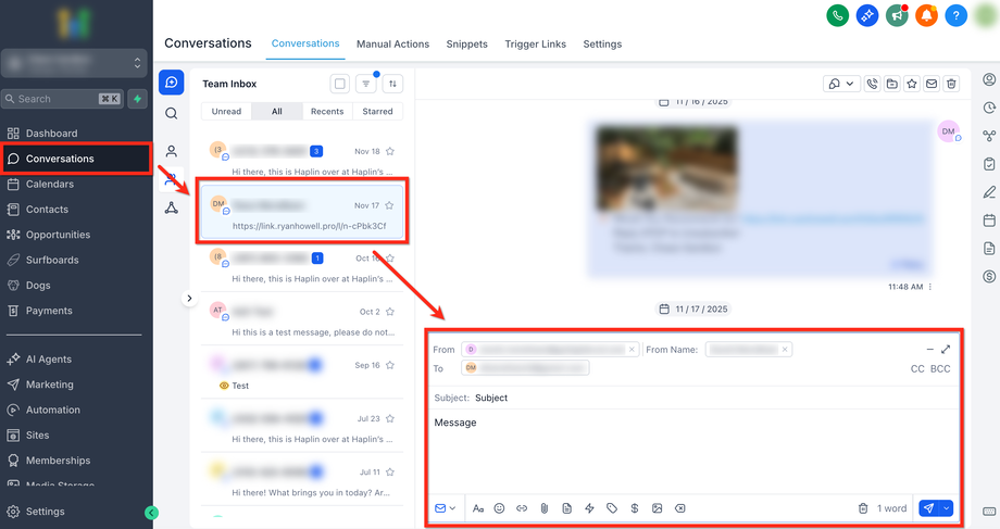 Conversation öffnen: Gehe zu Conversations und öffne oder starte einen E-Mail-Thread. Betreff und Nachricht verfassen.