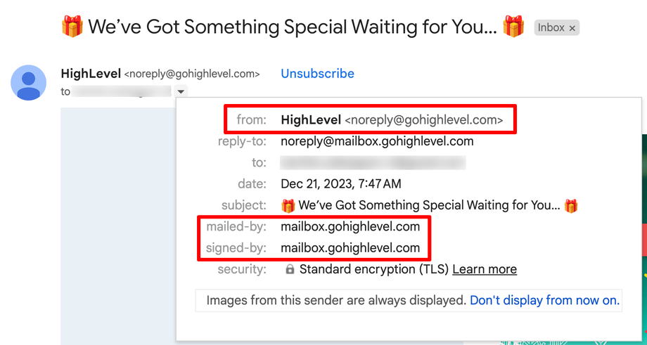 Beispiel dafür, wie eine gebrandete Versand-Domain für Gmail-Nutzer aussieht