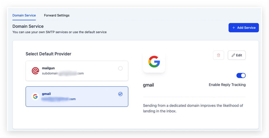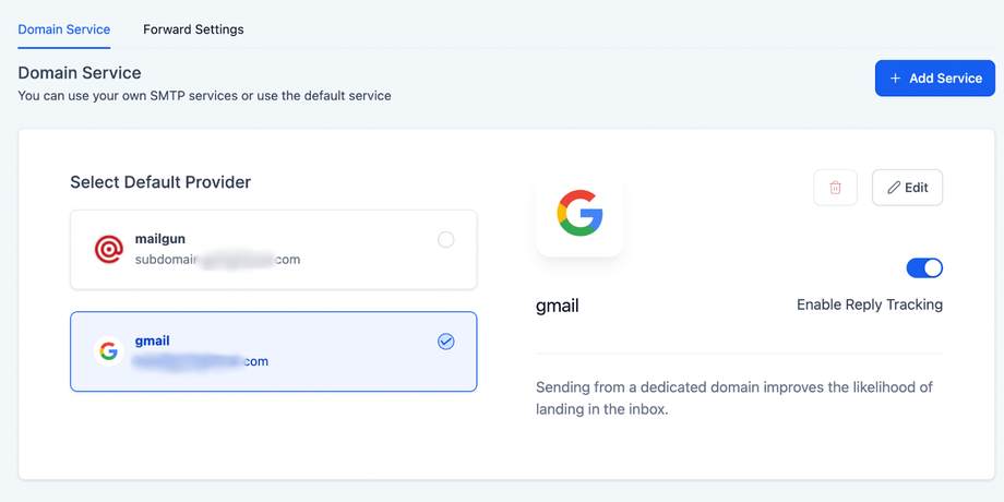 Es gibt keine Option, Reply Tracking für Mailgun zu aktivieren, da dies direkt über die in Mailgun eingerichtete Receiving Route integriert ist. Klicke hier, um mehr zu erfahren über: How to setup Replies in MailGun.