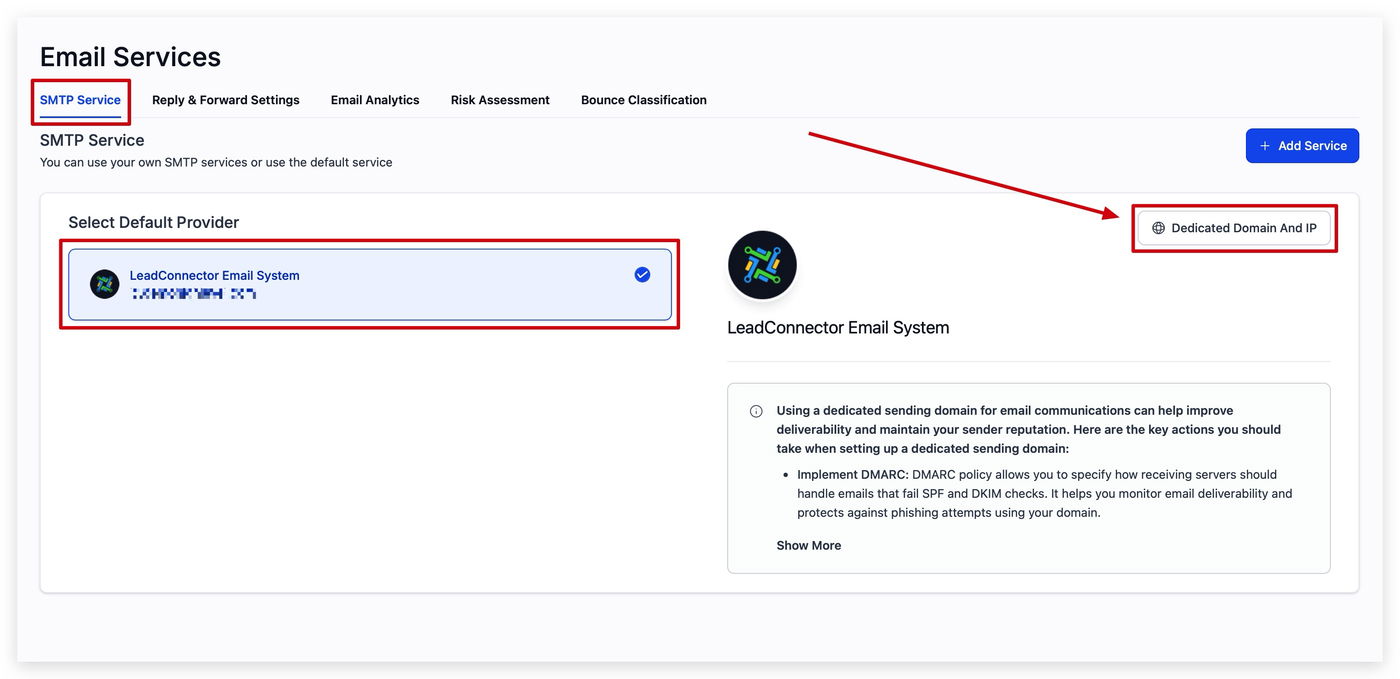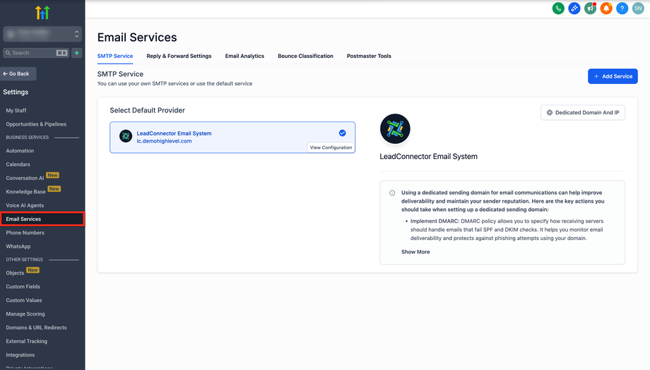 Navigieren Sie zu EMAIL SERVICES in Ihren Sub-Account-Einstellungen.