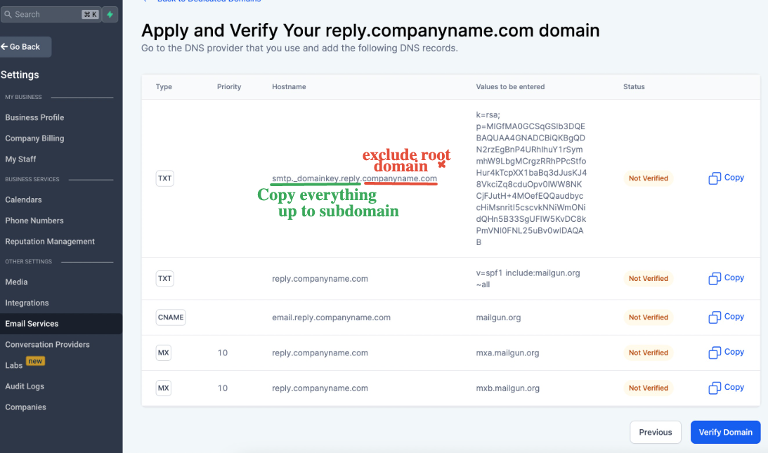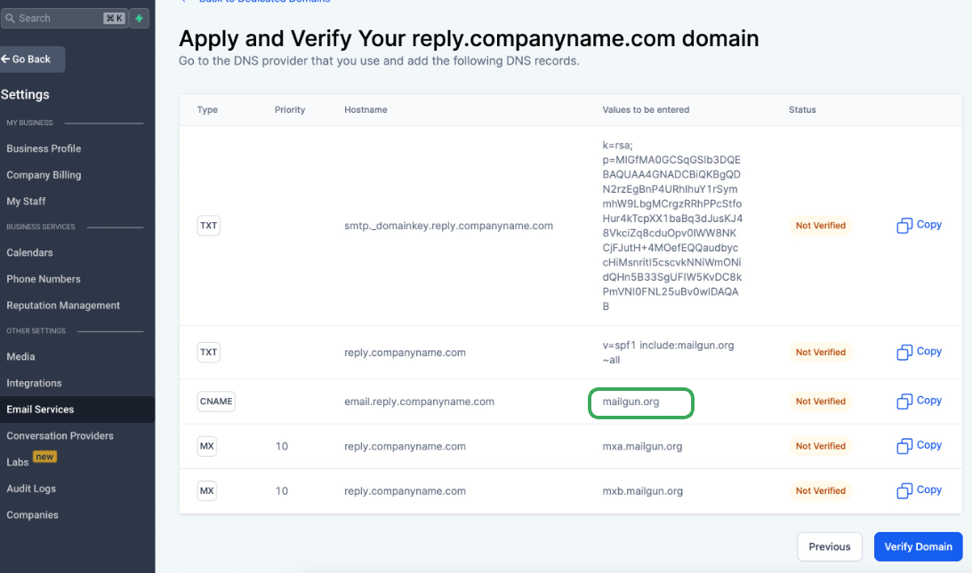 Sieh dir auch an: How to move a sending domain from Mailgun to LeadConnector?