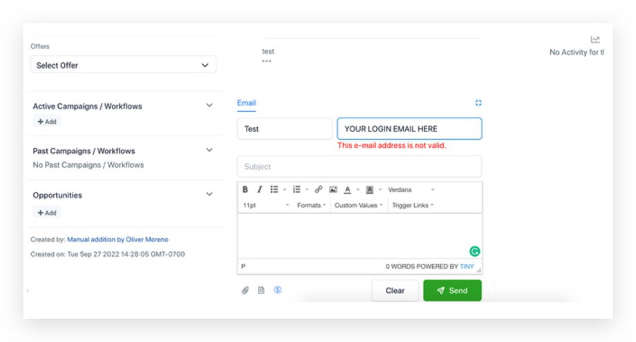Bei manuellen Konversationen wird die Absender-E-Mail standardmäßig auf die Login-E-Mail des Benutzers gesetzt. Wir müssen die E-Mail unten so einstellen, dass sie mit der integrierten SMTP-E-Mail übereinstimmt. Standardmäßig wird hier Ihre Login-E-Mail angezeigt.