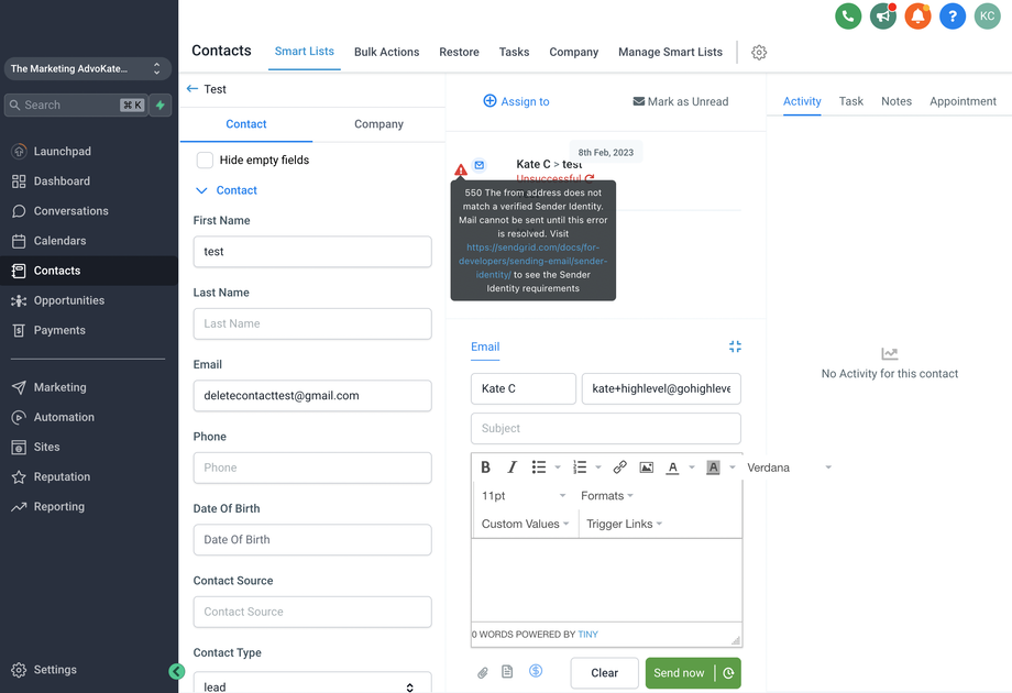 Für den Fehler, den wir in der Conversation anzeigen, rufen wir die Fehlermeldung vom SMTP-Provider ab und stellen sie dar. Wenn Sie bereits von der SMTP-integrierten E-Mail aus senden, öffnen Sie bitte ein Support-Ticket bei Ihrem SMTP-Provider, damit dieser Ihnen den Zustellstatus der E-Mail mitteilen kann.