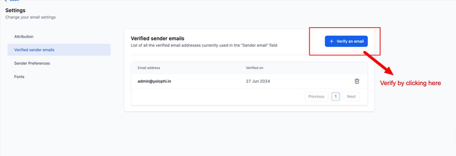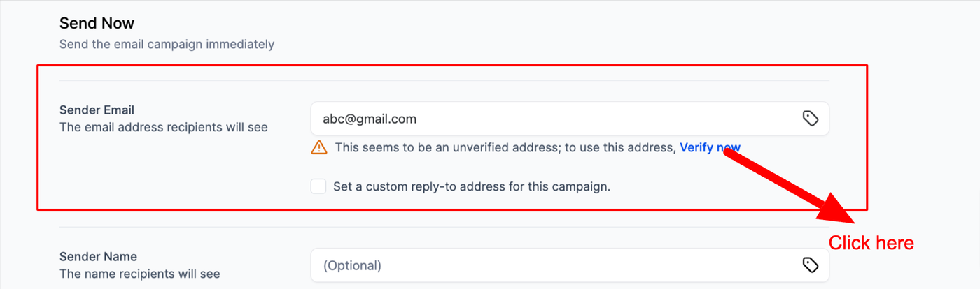 Gib die E-Mail-Adresse ein, die du verifizieren möchtest, im Feld Sender Email.
