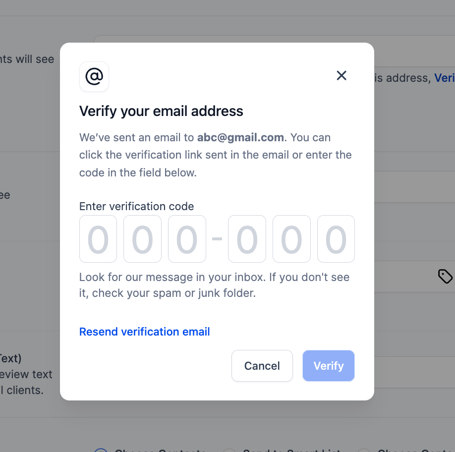 Sobald das OTP eingegeben wurde, ist deine E-Mail-Adresse verifiziert und kann für zukünftige Campaigns verwendet werden.