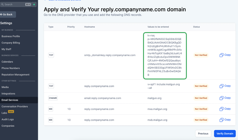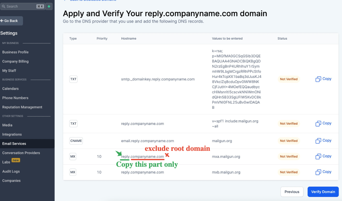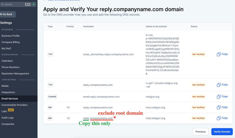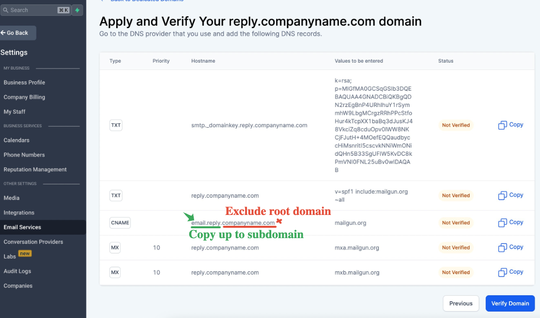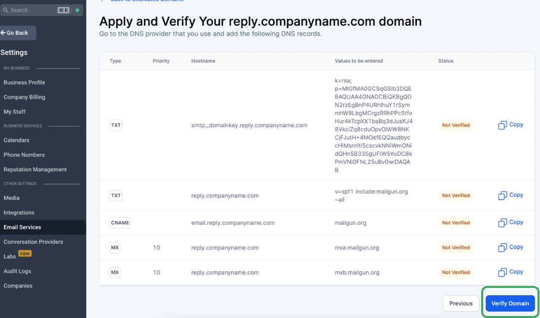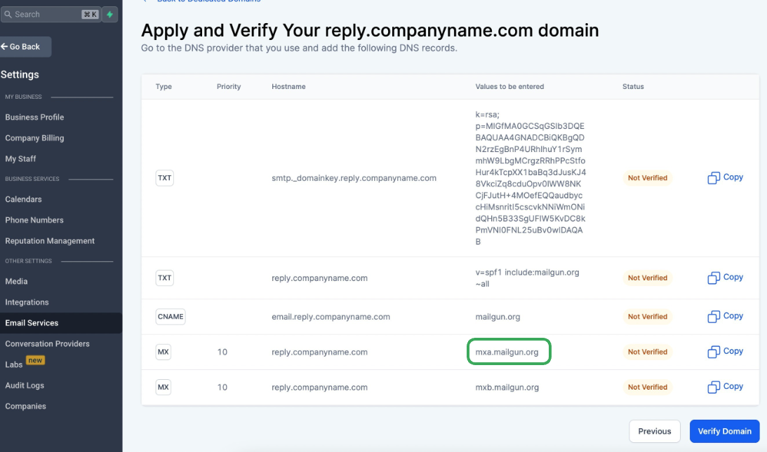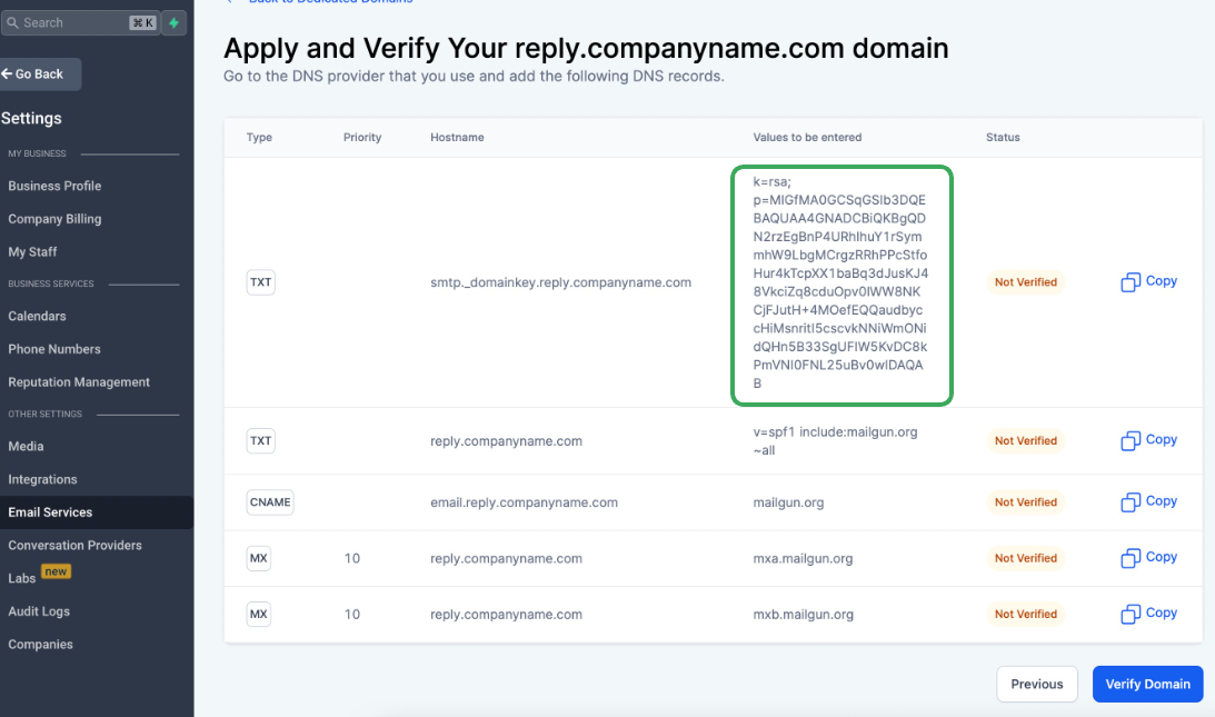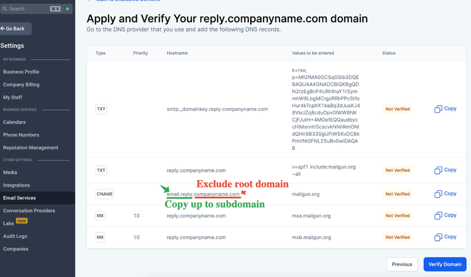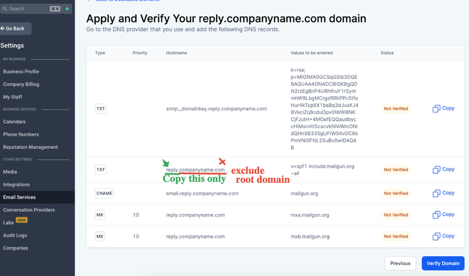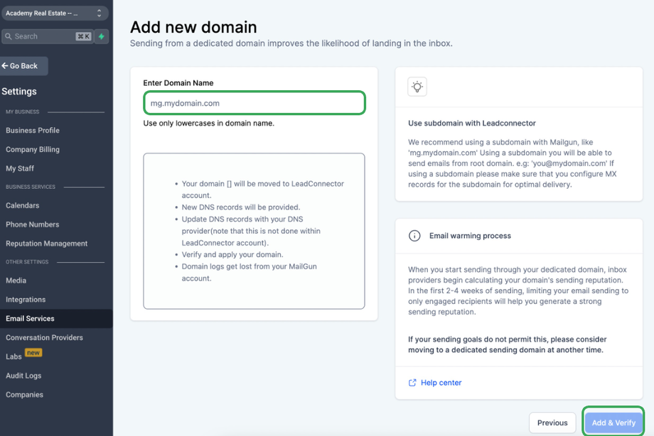 Sieh dir auch an: How to move a sending domain from Mailgun to LeadConnector?