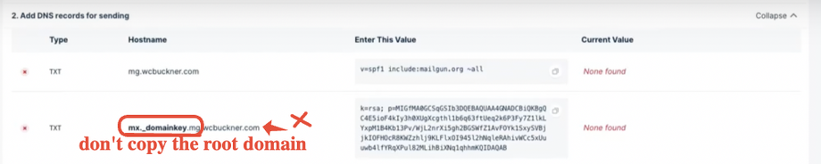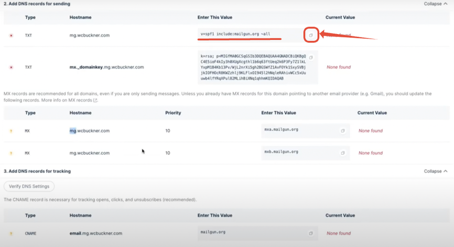 Kopiere hier den ersten TXT-Record: v=spf1 include:mailgun.org ~all