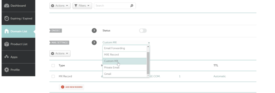 Klicke auf Domain List > Manage
