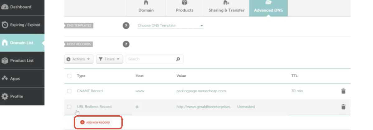 Klicke auf Advanced DNS, wir werden 5 DNS-Records hinzufügen