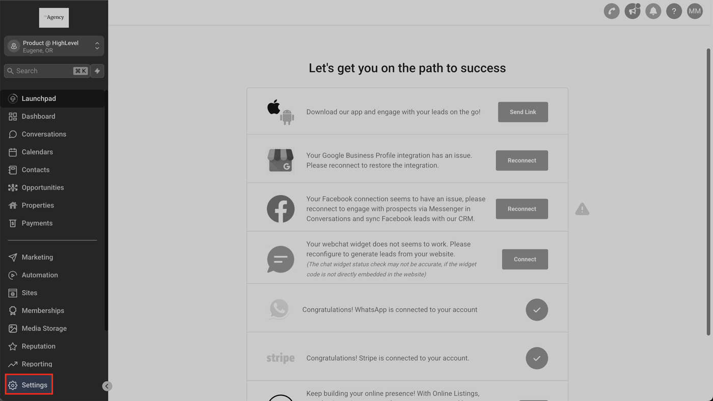 Gehen Sie zu Agentur > Einstellungen