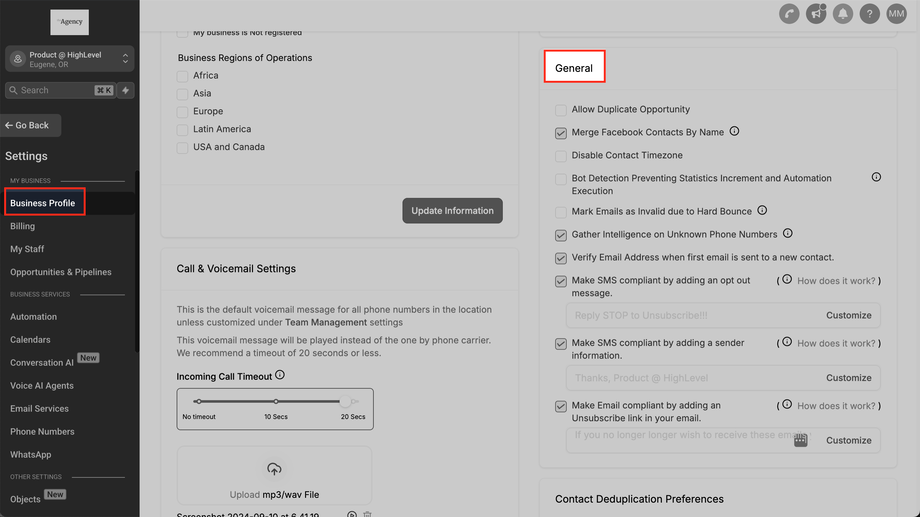Navigieren Sie zu Business-Profil > Allgemein