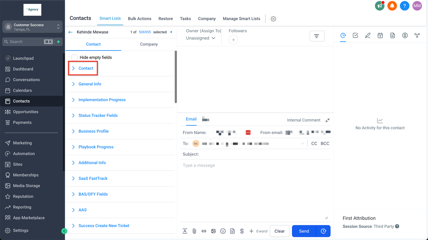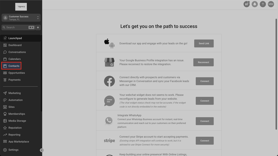 Gehe zu Unterkonto > Kontakte