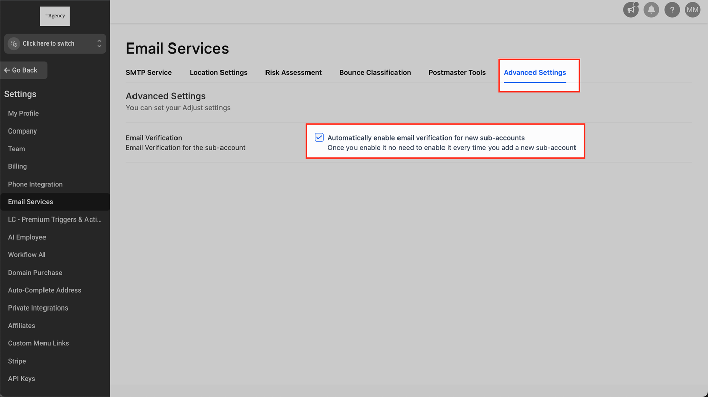 Wie aktiviert man die E-Mail-Verifizierung (Agentur-Ebene)