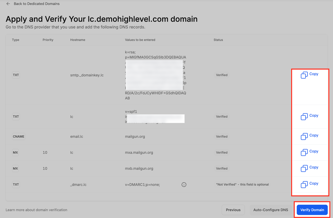 HighLevel stellt Ihnen die exakten benötigten Records zur Verfügung.