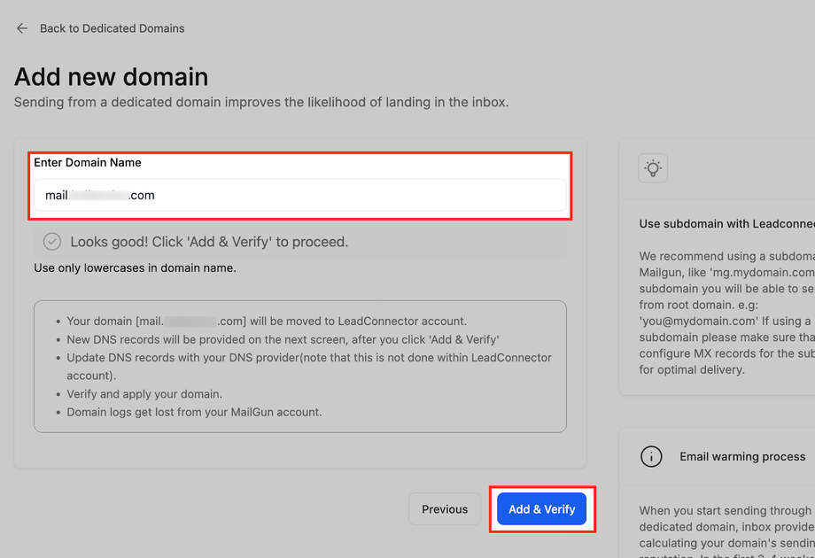 Wir empfehlen die Verwendung einer Subdomain (z. B. mail.yourdomain.com), um die Reputation Ihrer Root-Domain zu schützen.