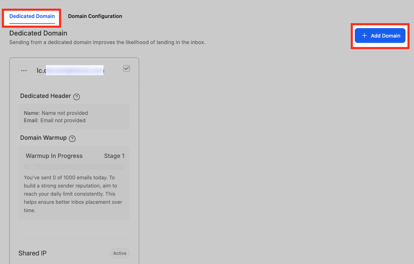 Navigieren Sie zu Einstellungen > E-Mail-Dienste > Dedicated Domain & IP.