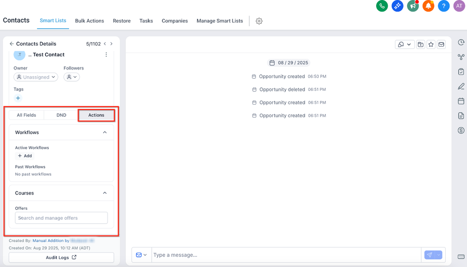 Verwenden Sie den Actionstab für schnelle Tools (z. B. Workflows verwalten oder Kundenportal).