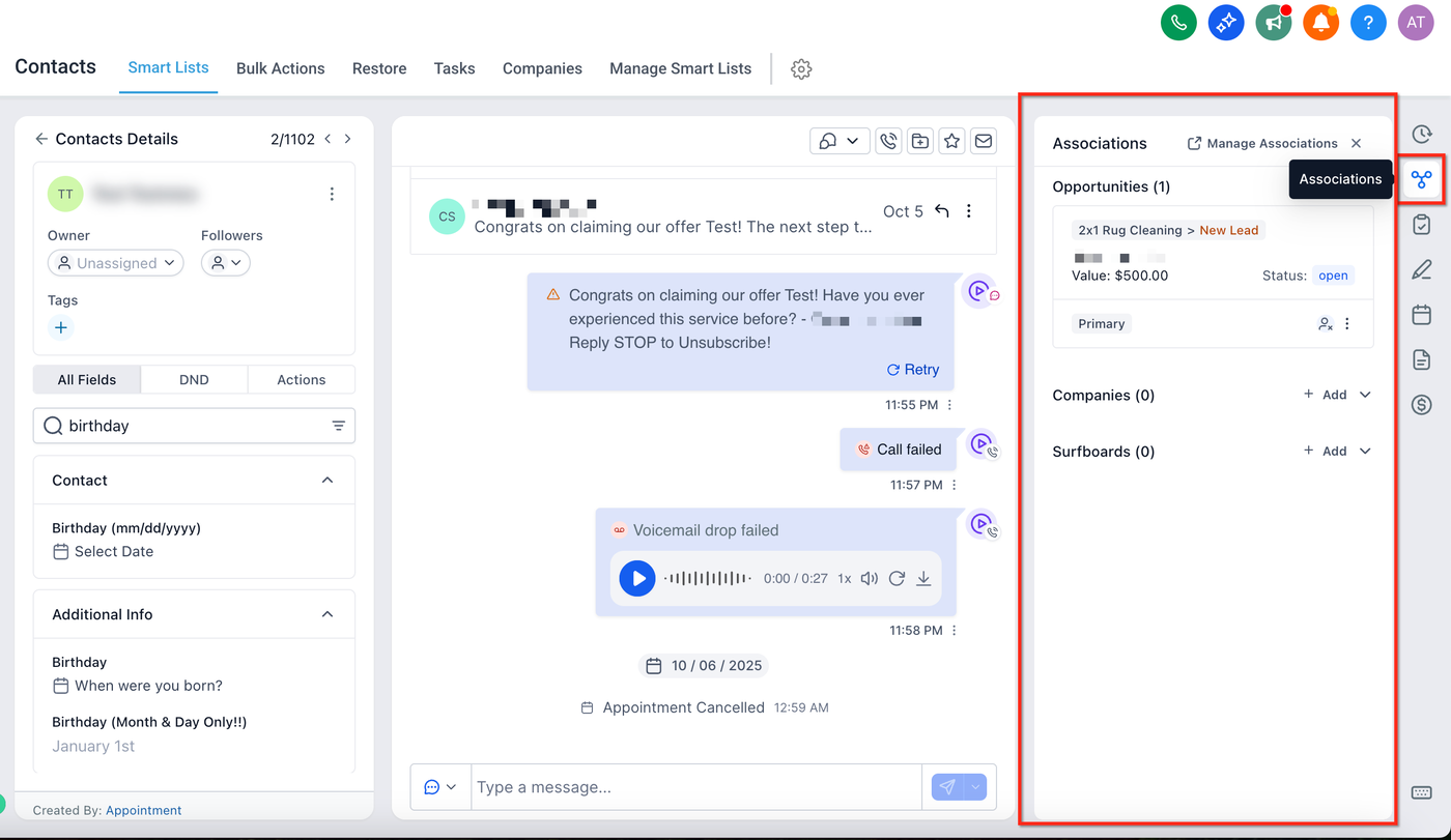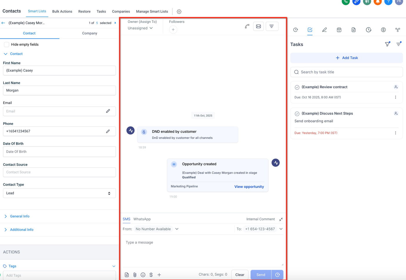Von Grund auf neu gestaltet, ist die Kontaktdetailseite der zentrale Arbeitsbereich, in dem Sie Kontaktinformationen überprüfen, Konversationen nachverfolgen, Aktivitäten protokollieren und Aktionen starten können – jetzt optimiert für Geschwindigkeit und Benutzerfreundlichkeit. Das Redesign ersetzt endloses Scrollen durch ein Drei-Panel-Layout, zeigt kritische Daten auf einen Blick und merkt sich Ihre persönlichen Anzeigeeinstellungen für ein wirklich optimiertes CRM-Erlebnis.