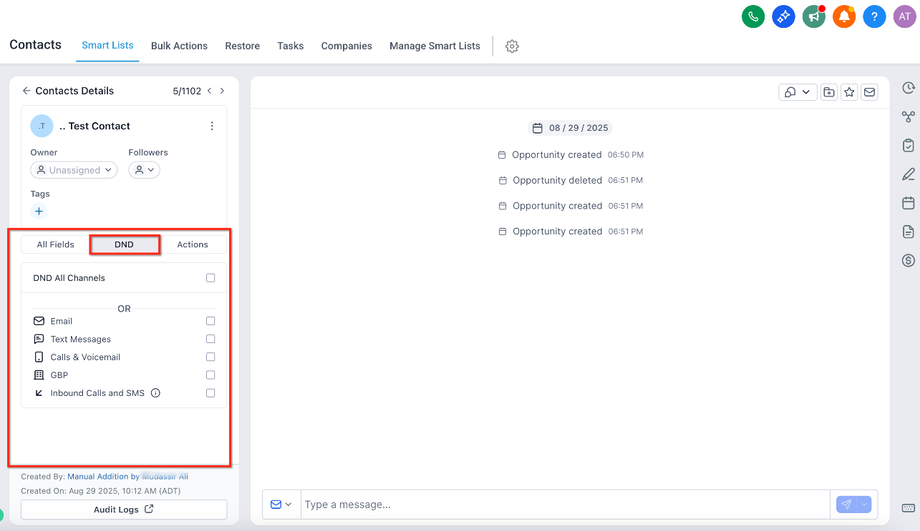 Verwenden Sie den DND-Tab, um Kommunikationspräferenzen zu konfigurieren.