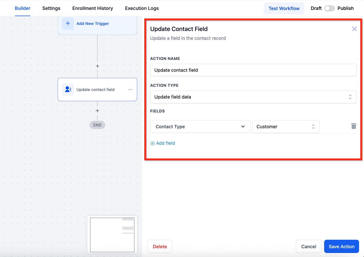 Fügen Sie im Workflow eine Aktion Kontaktfeld aktualisieren hinzu