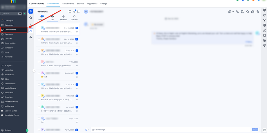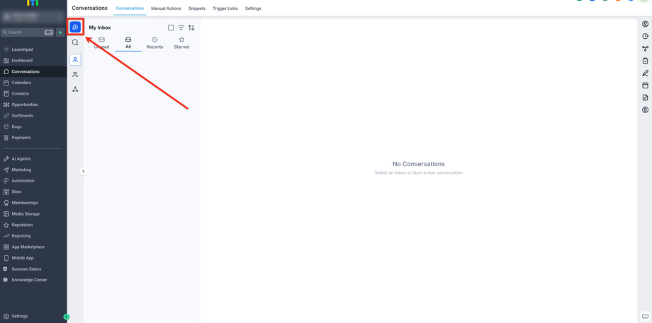 Öffnen Sie die HighLevel- oder LeadConnector-Mobile-App auf Ihrem iOS- oder Android-Gerät und tippen Sie unten auf dem Bildschirm auf den Tab Conversations.