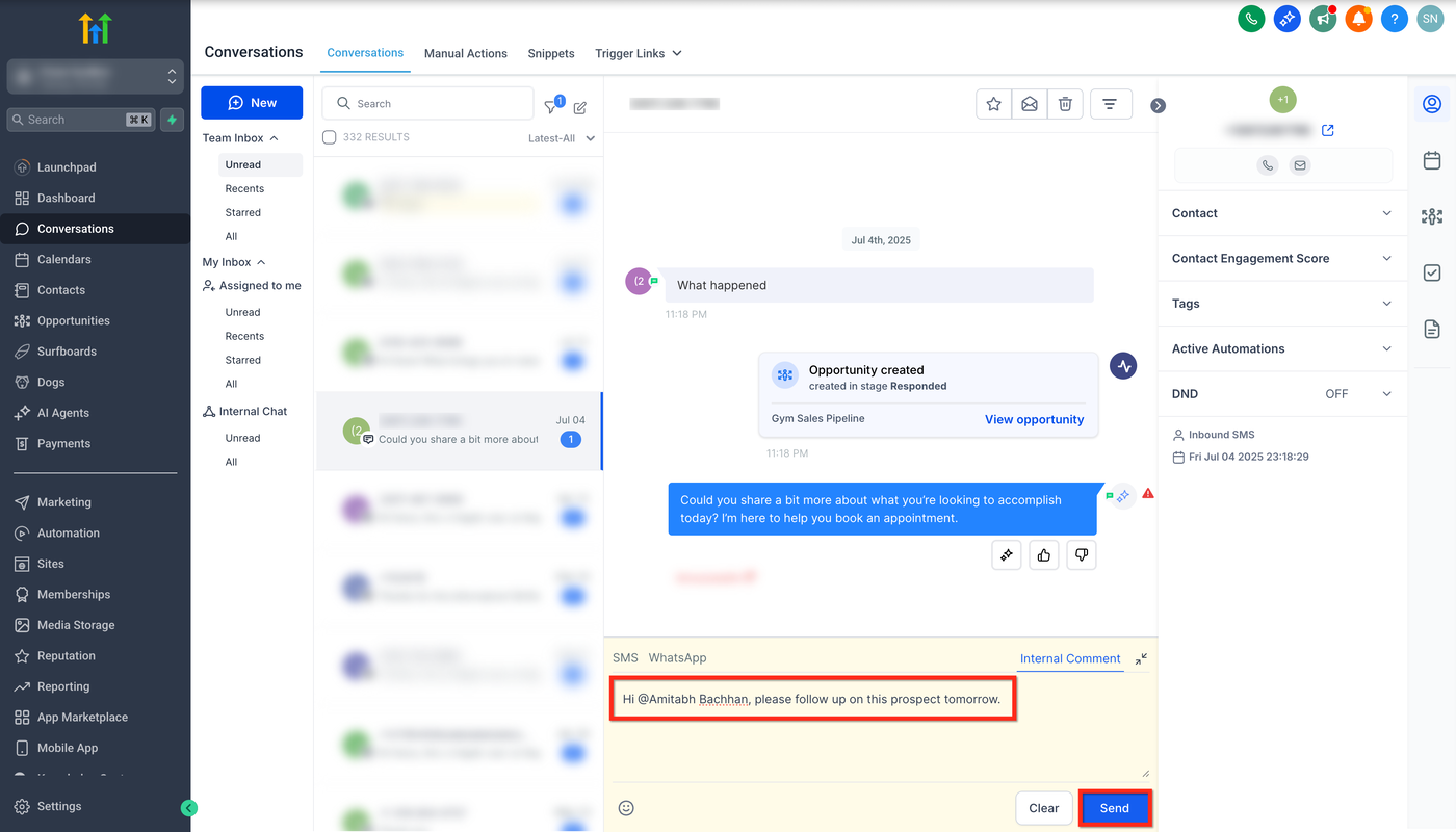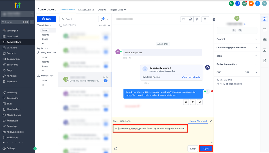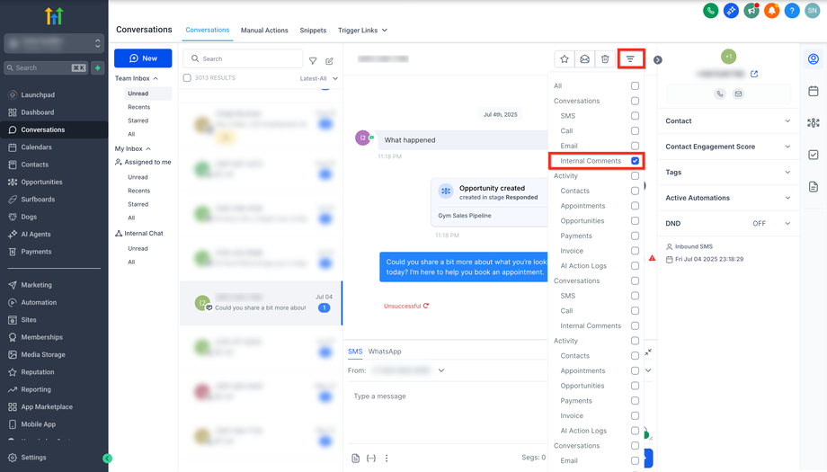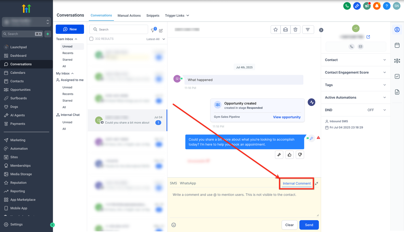 Interne Kommentare und @Erwähnungen in HighLevel Conversations verwenden, um privat innerhalb eines Kontakt-Threads zusammenzuarbeiten, ohne dass Notizen für den Kontakt sichtbar sind. Dieser Artikel erklärt, was interne Kommentare und @Erwähnungen sind, wer sie nutzen kann und wie Teammitglieder Beiträge posten, suchen und benachrichtigen können.