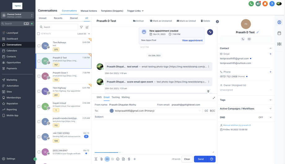 Benutzer können nun Kontaktdetails nahtlos hinzufügen, bearbeiten und verwalten – von Name, Telefonnummer und E-Mail über Eigentümerinformationen, Tags, Kampagnenzuordnungen bis hin zu den wichtigen DnD (Do Not Disturb)-Einstellungen. Es ist eine zentrale Anlaufstelle, um Ihre Kontakt-Datenbank stets aktuell zu halten, ohne laufende Gespräche zu verpassen.