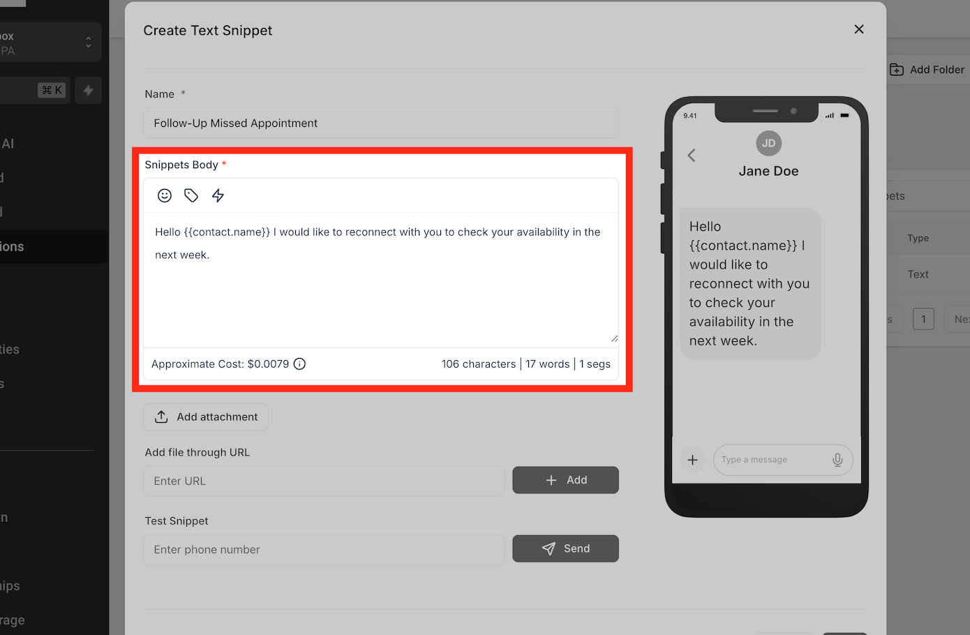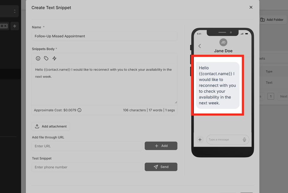 A: Ja, Snippets unterstützen Platzhalter, sodass Nachrichten mit Kundennamen, Termindetails oder anderen dynamischen Feldern personalisiert werden können.