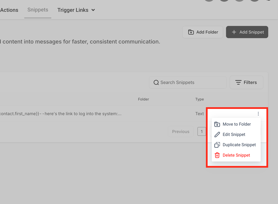 Bearbeiten, duplizieren oder löschen Sie Snippets direkt über das Menü.