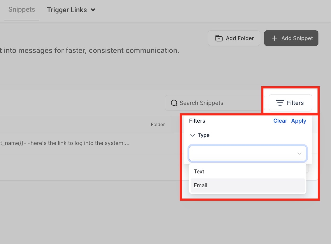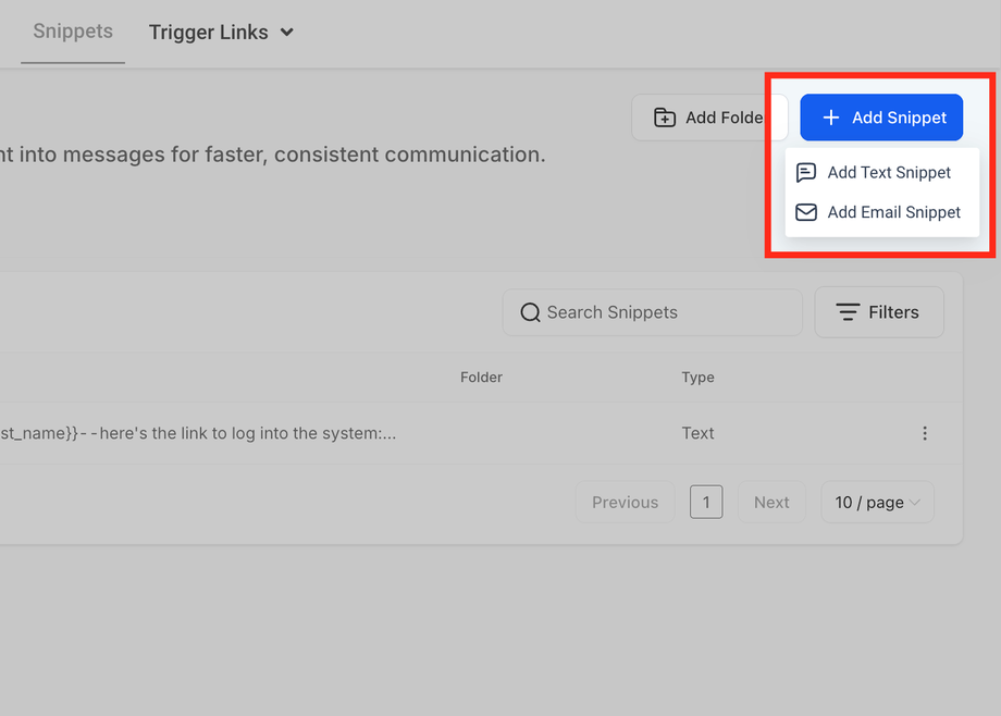 Klicken Sie auf Add Snippet und wählen Sie zwischen Text oder Email.