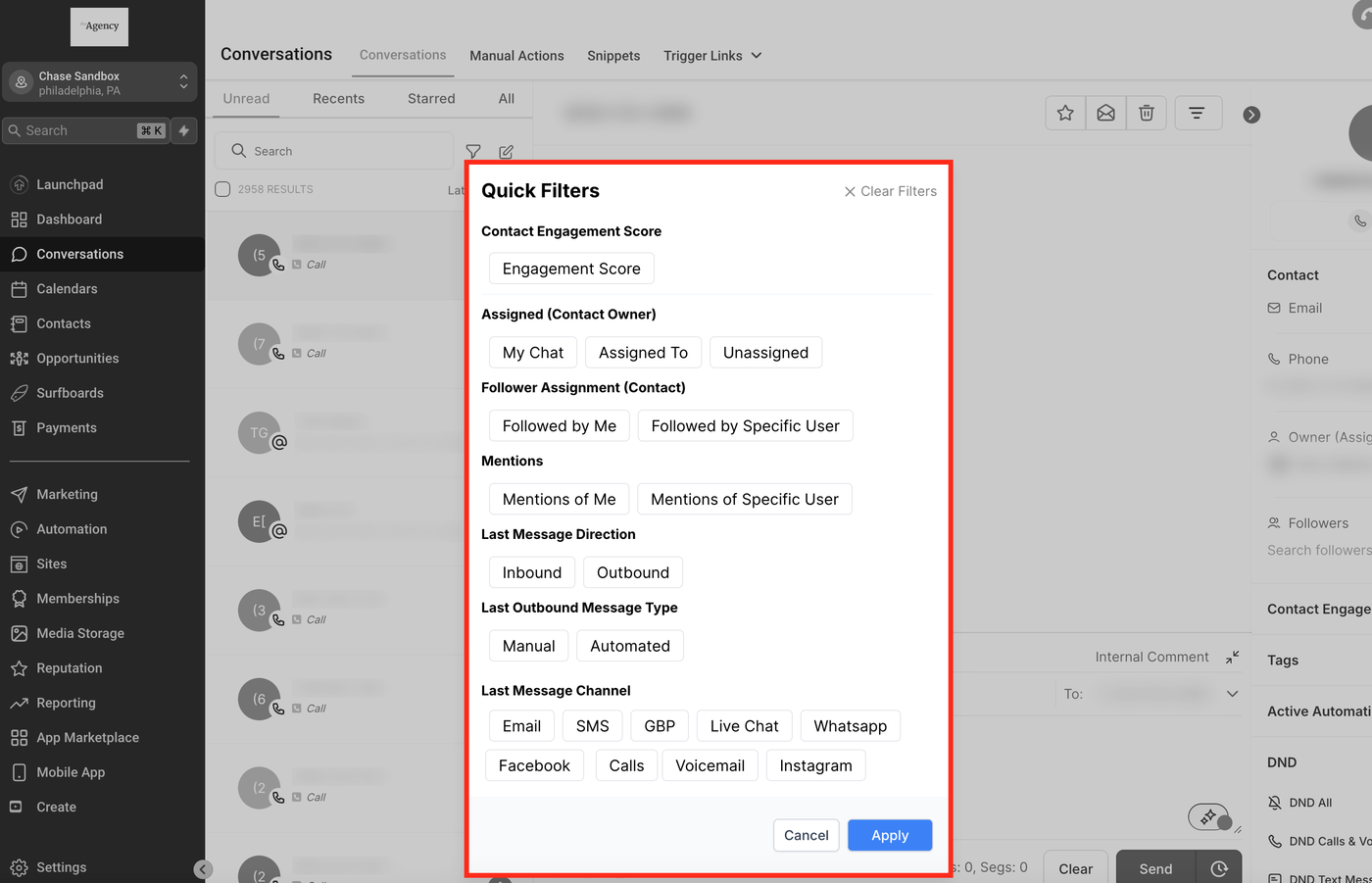 HighLevel bietet zusätzliche Tools, um dein Konversationsmanagement weiter zu verbessern: