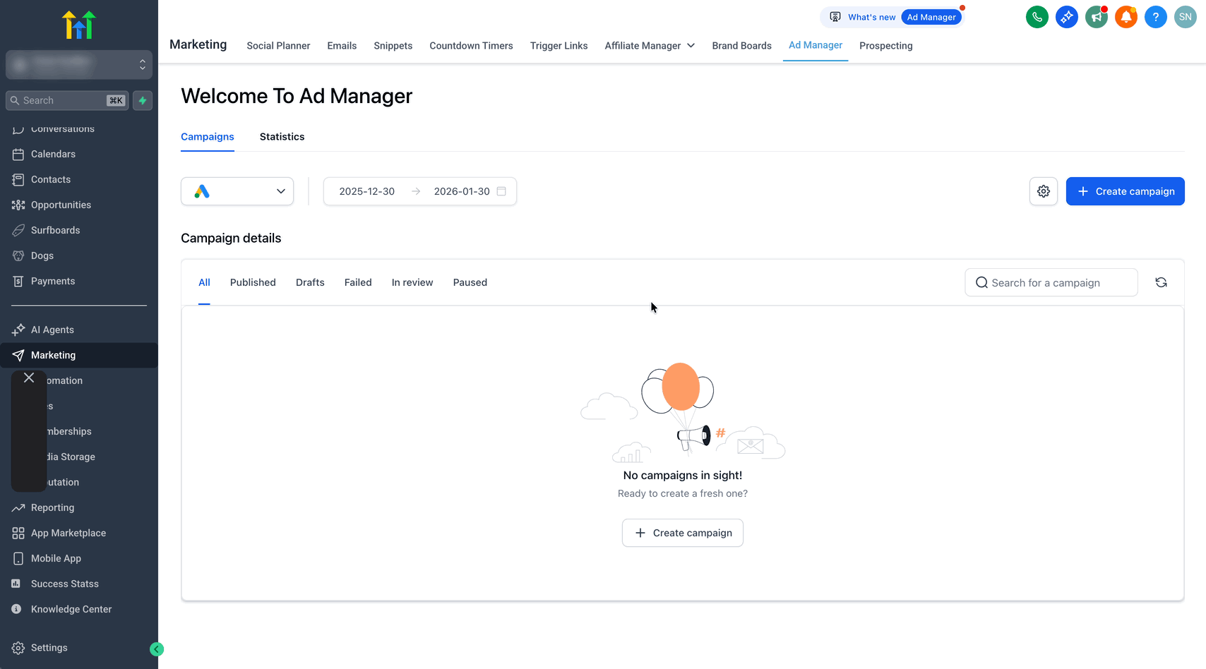 Nahtlose Einrichtung: Kein Wechsel zur Google Ads-Oberfläche erforderlich – alles wird innerhalb von HighLevel verwaltet.