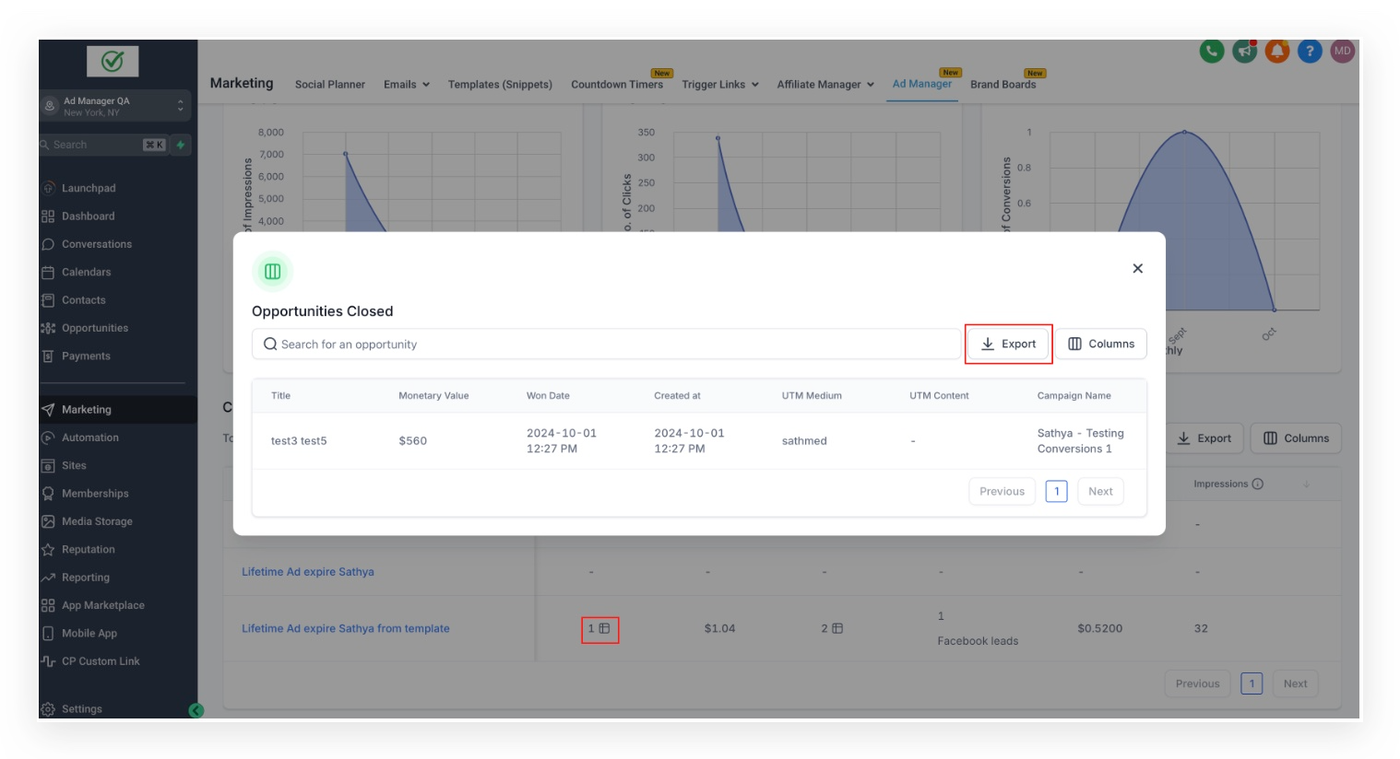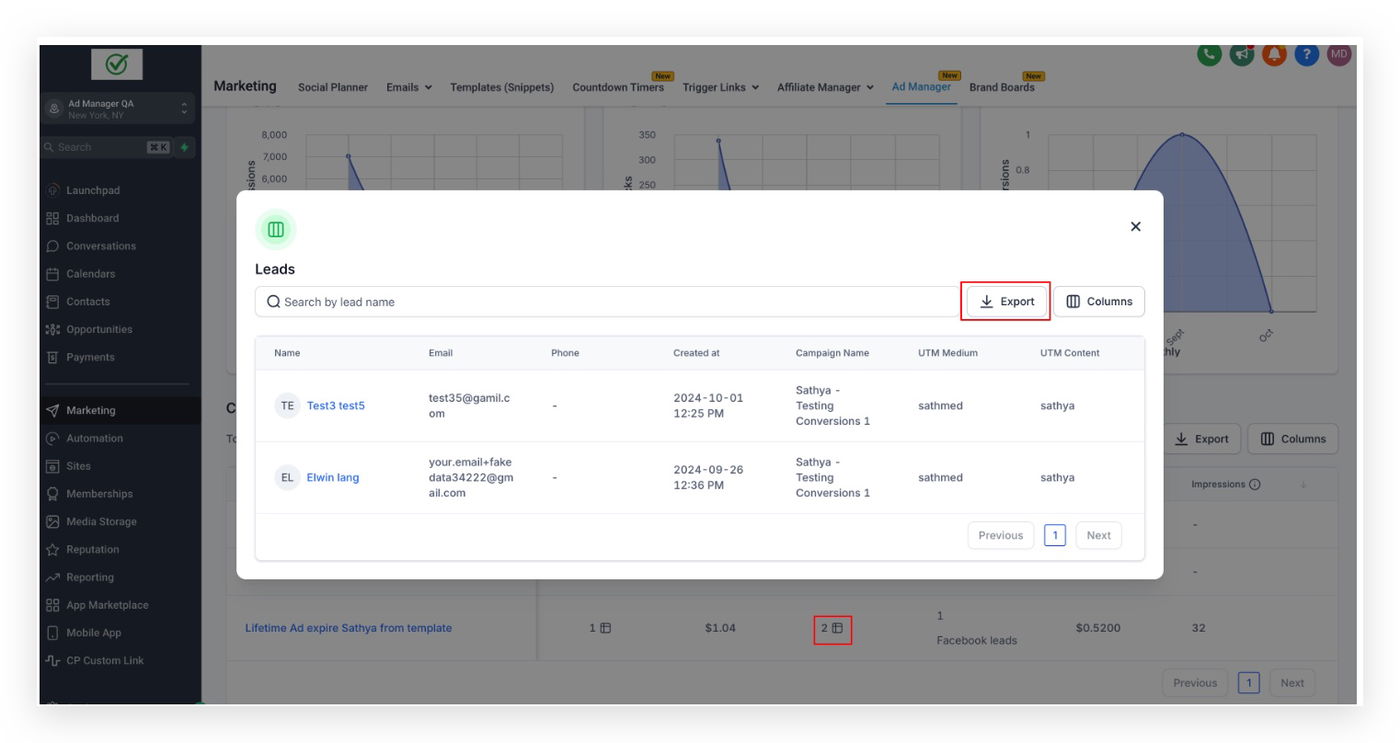 Wie kann ich die Leads- und Verkaufsdetails meiner Kampagnen einsehen und speichern?