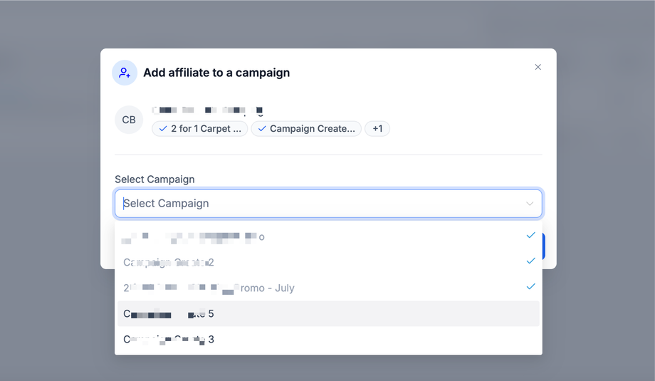 Schritt 2: Wählen Sie die Kampagne, in der der Affiliate ausgesetzt werden soll