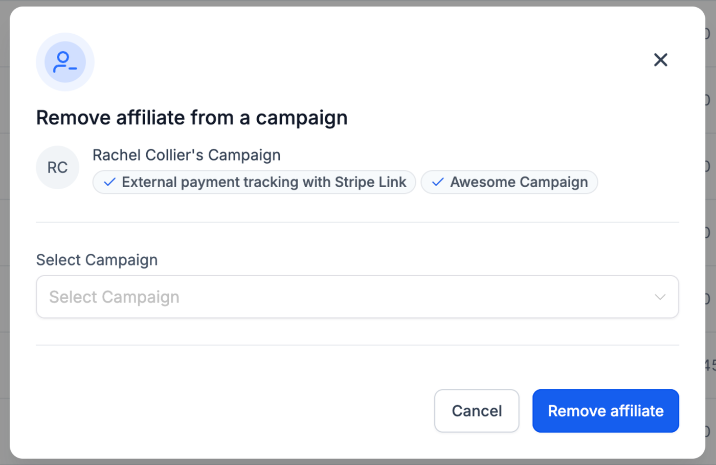 Einen Affiliate aus einer Kampagne entfernen