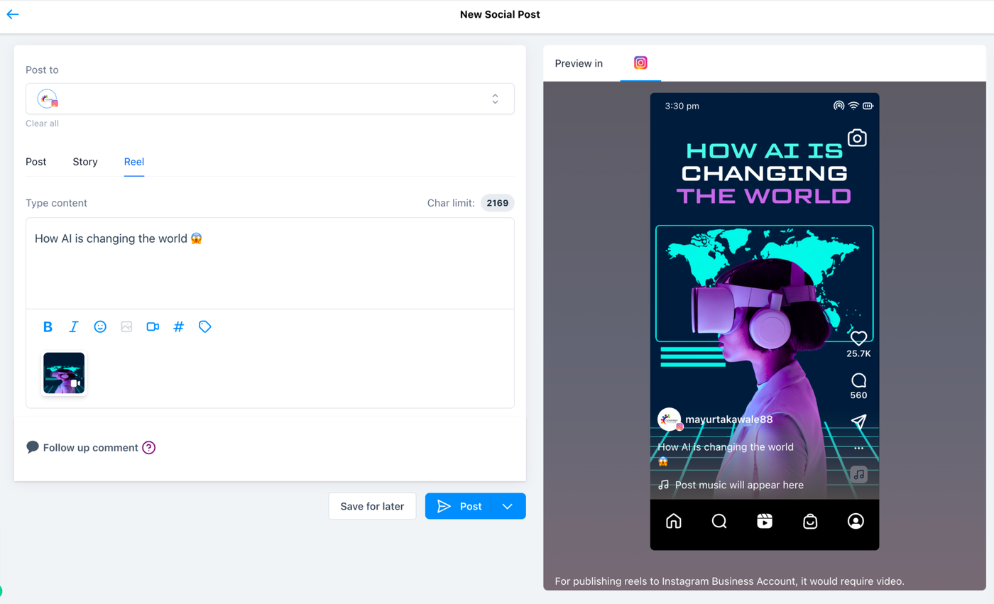 So erstellen Sie ein Instagram Reel mit dem Social Planner