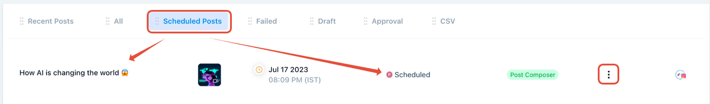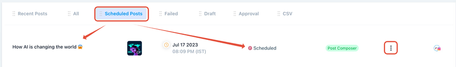 Wenn der Beitrag geplant wurde, erscheint er im Tab „Scheduled Posts“.