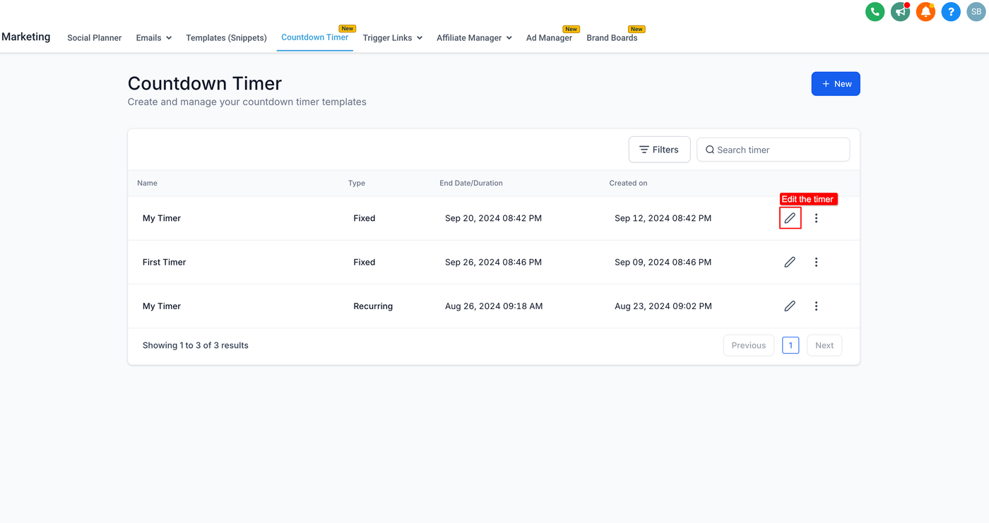 Suche den Timer, den du bearbeiten möchtest, und klicke auf Bearbeiten (Edit).