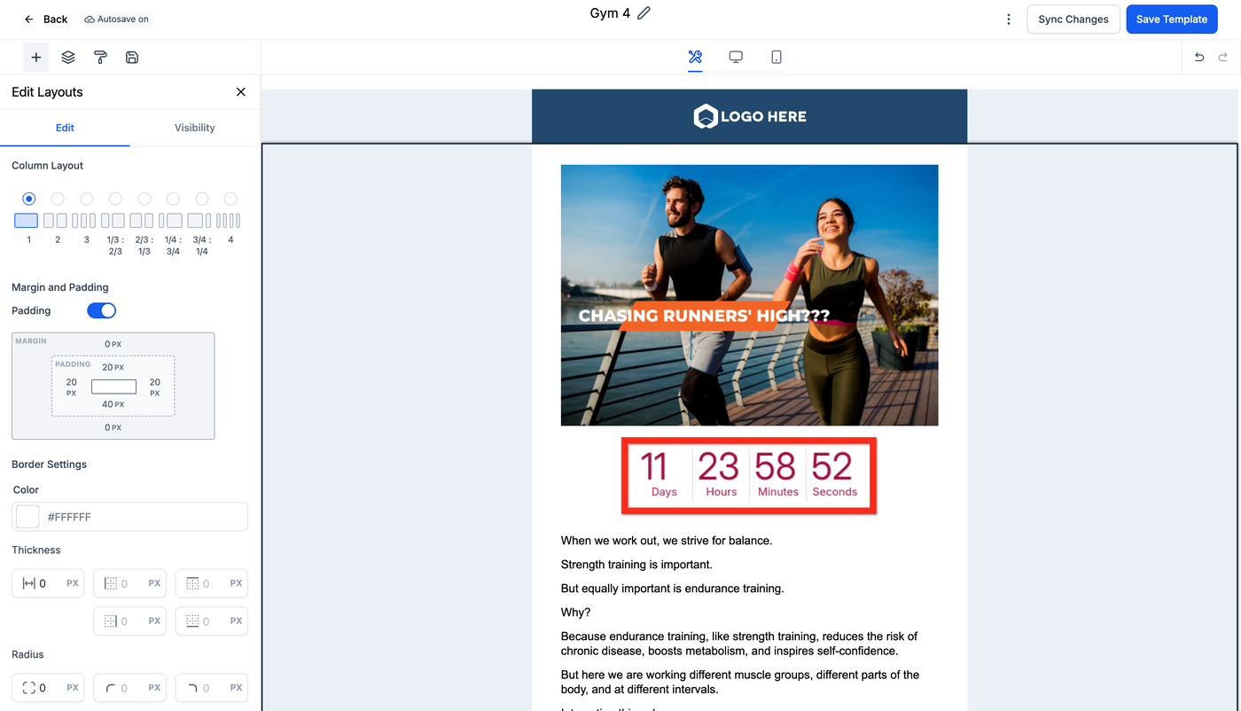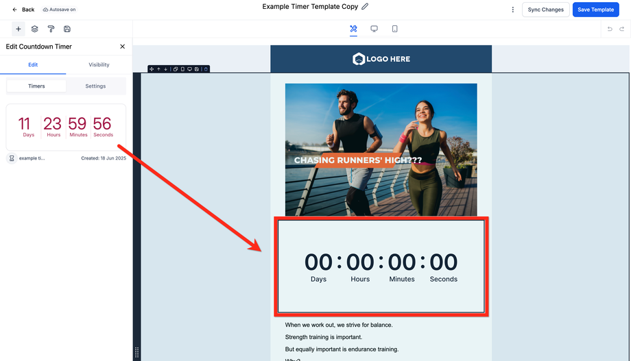 Erstelle ein neues Template oder bearbeite ein bestehendes und füge einen Countdown-Timer hinzu.