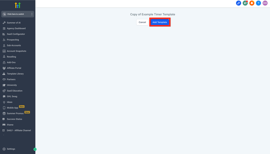 Wenn du in deiner Agentur eingeloggt bist, öffnet sich die Seite direkt und du kannst auf Add Template klicken.