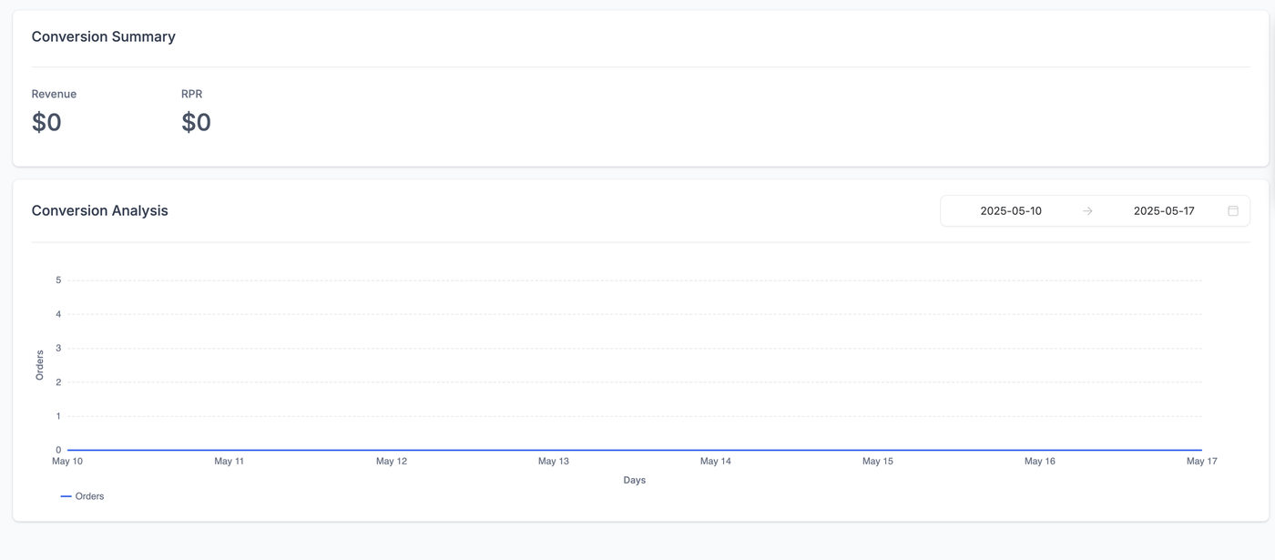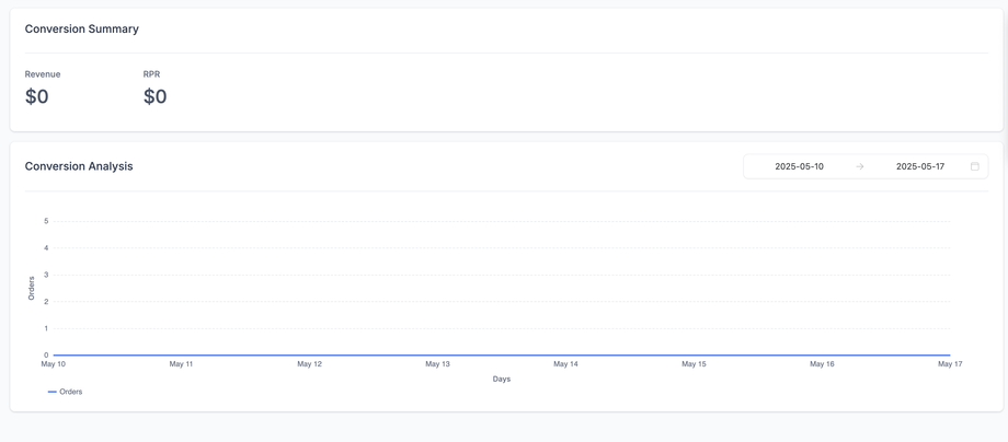 Hinweis: Wenn Umsatz-Tracking nicht eingerichtet ist, werden diese Felder als $0 angezeigt.