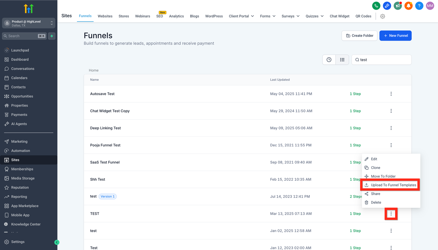 Wenn Sie einen Funnel, eine Website, einen Store, Blog, eine E-Mail, ein Formular, eine Umfrage oder ein Quiz als Template hinzufügen möchten, navigieren Sie zu: